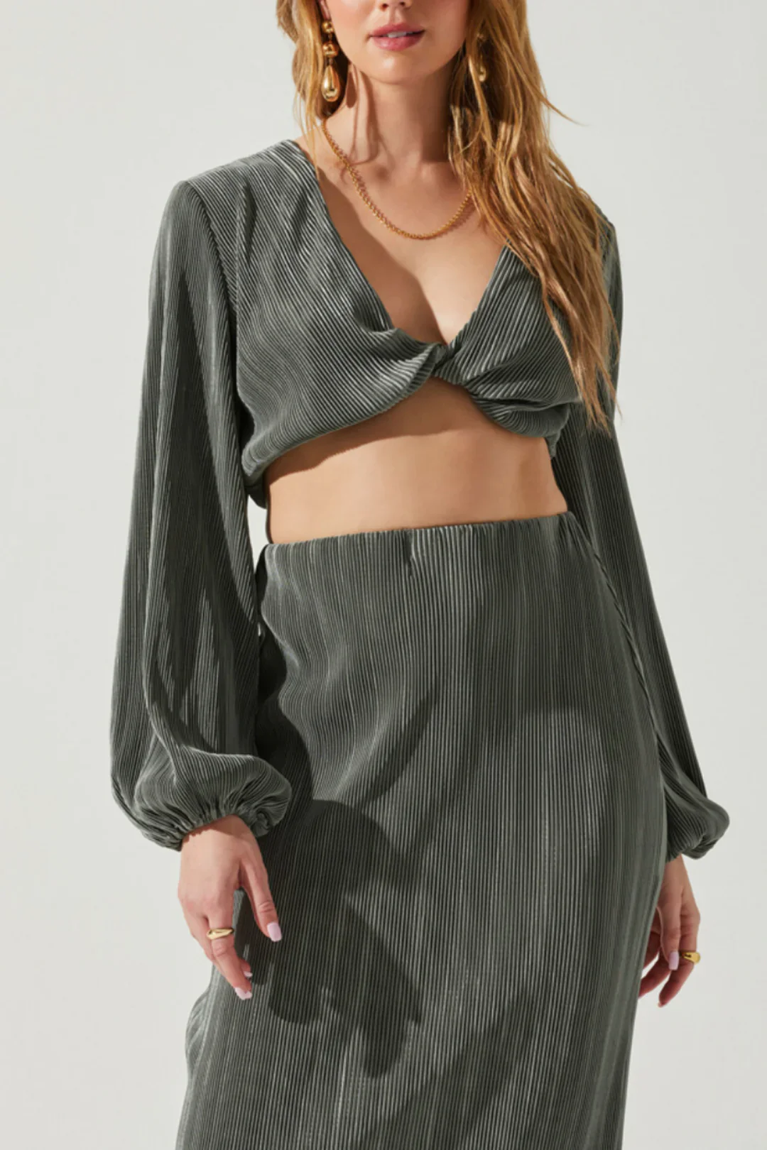 Glamorously draped in plissé fabric, the ASTR The Label Catelya Skirt is a chic, midi length, slip skirt boasting a slit back hemline. This sophisticated elastic-waisted skirt is the perfect companion to the coordinating CATELYA TOP, allowing you to effortlessly create a breathtaking evening ensemble.