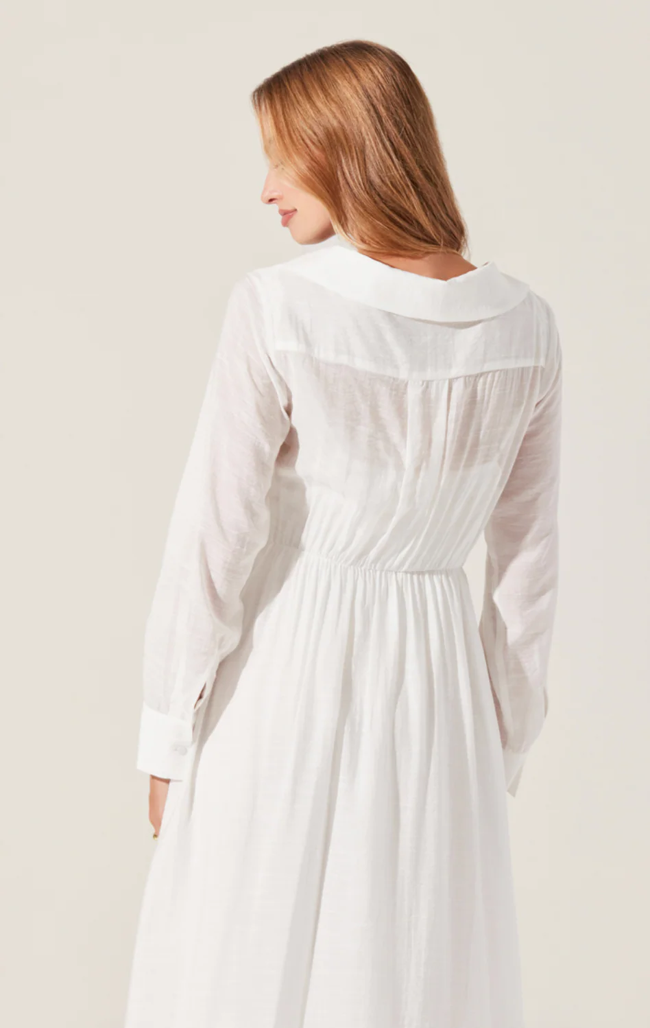 Light and airy, the ASTR The Label Diell Dress is the perfect addition to your wardrobe. With a semi-sheer shirtdress design and midi length, it's perfect for any occasion. The drop waist and pintuck detail add a touch of vintage whimsy, while the wide open collar and button front keep it chic and stylish. Fully lined with a removable slip, you can customize your look for maximum comfort and versatility.
