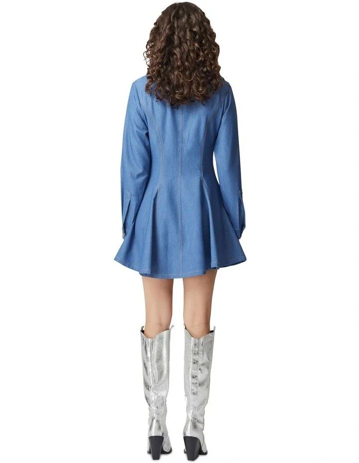 Introducing the CURAAE by Elliatt Stella Mini Dress, a playful denim twist on the classic shirt dress. With a sharp collar, long sleeves and subtle, brushed-gold, snap front closure, this dress offers a structured fit-and-flare silhouette to flatter all of your curves.