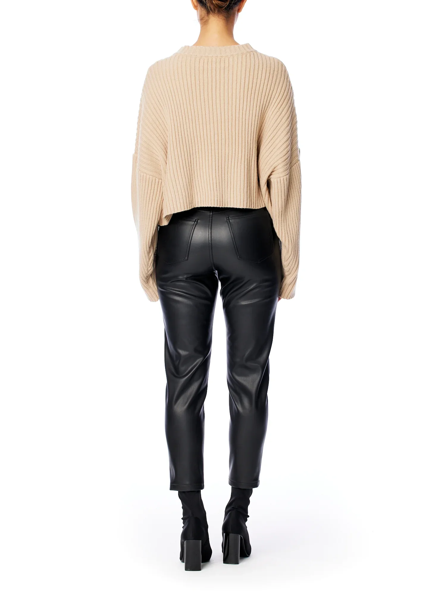 Stay warmĀ and stylish in the LBLC The Label Telo Sweater this season. This thick crew neck sweater features a drop shoulder and ribbing for a relaxed, yet flattering fit. The slightly cropped length is perfect for pairing with high-waisted jeans or trousers -- or better yet, how about the CLARK WIDE LEG LEATHER TROUSERS!
