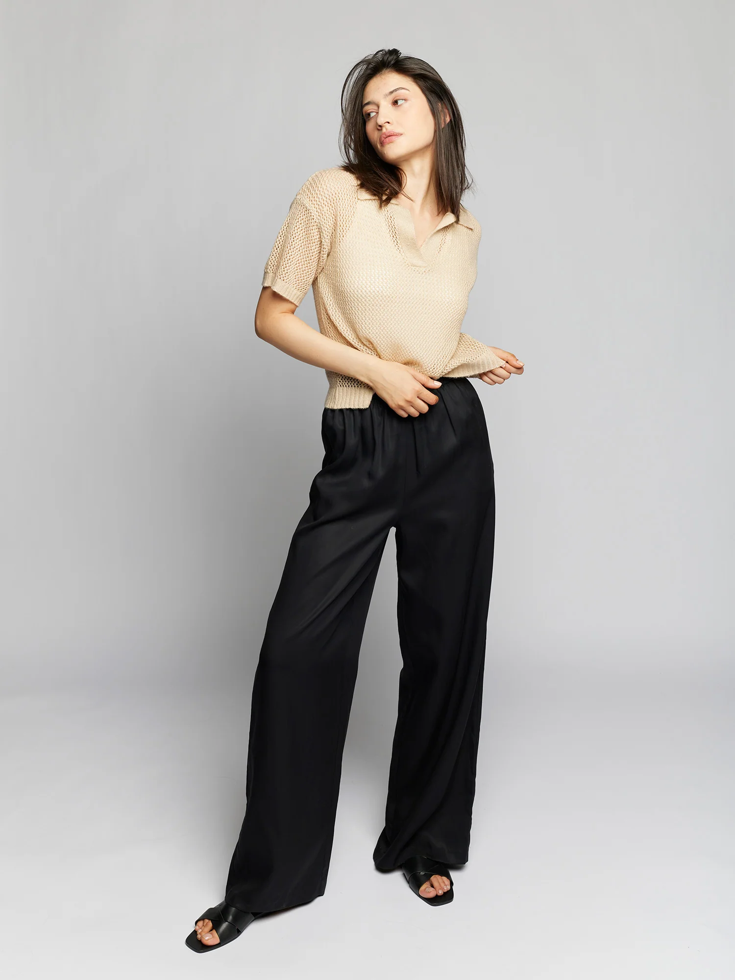 Elevate your warm weather wardrobe with LBLC's Winnie top. Crafted with an open knit design and featuring a collared notch-neck, this short sleeve top exudes minimalist sophistication and quiet luxury. The ribbed detailing on the hem, sleeves, and collar adds a touch of elegance to this must-have piece. Perfect for any occasion, this top will surely make a statement.