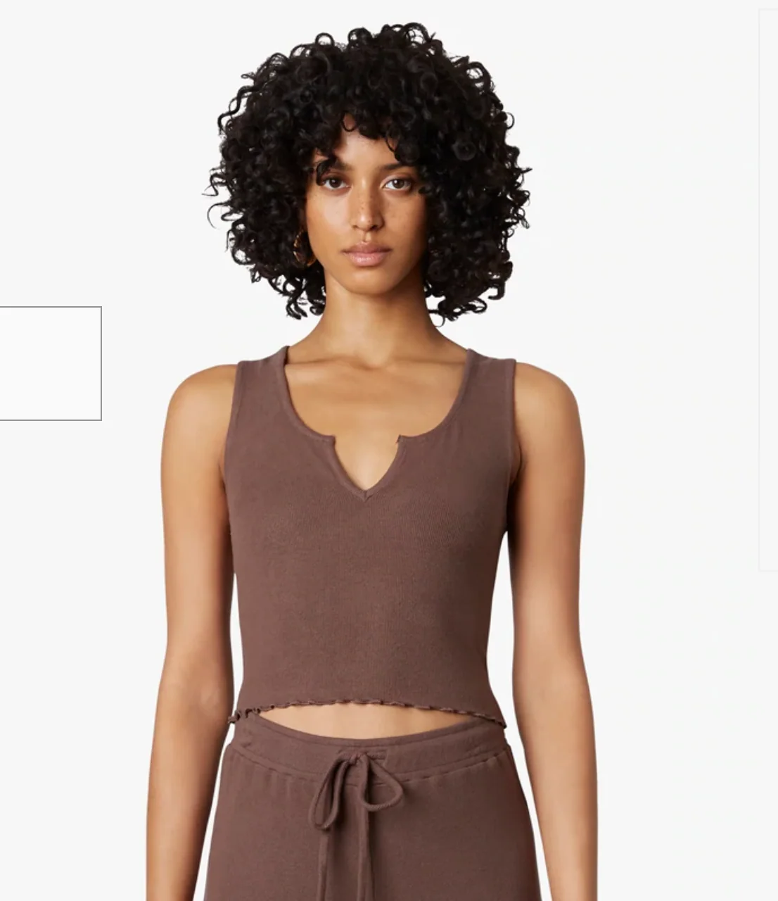 Super soft hacci tank featuring a notched neckline and lettuce edge hem. Pair it with the coordinating NIA CARDIGAN and LOUNGE PANTS for a complete lounge look!