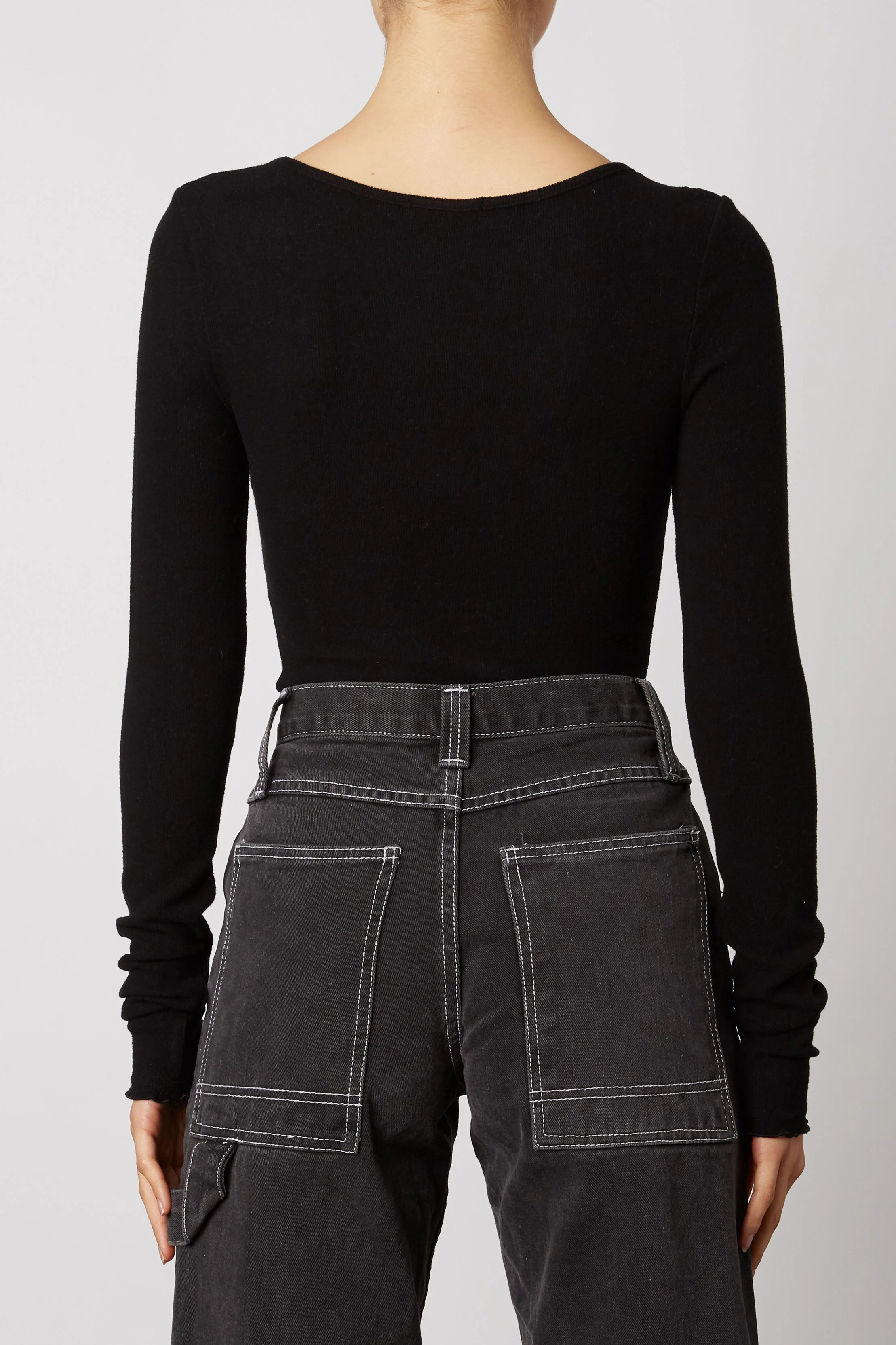 Get back to basics with this soft, ribbed, long sleeve tee with a simple, notched neckline. The ideal layer for days in, or nights out.