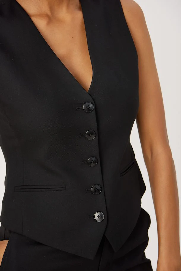 The RikkeĀ Vest in blackĀ is an update to your classic, everyday vest. Made in a sustainable suitingĀ fabric, this structured vest is perfect for any occasion. It features a front button closure and front welt pockets - an easy and timeless staple for your fall wardrobe.