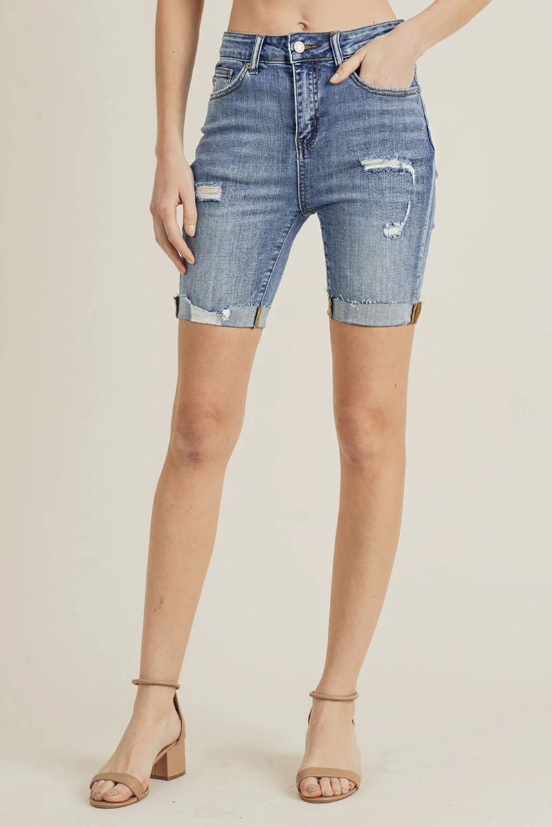 RISEN JEANS Jenna High Rise Distressed Mid-Length Shorts