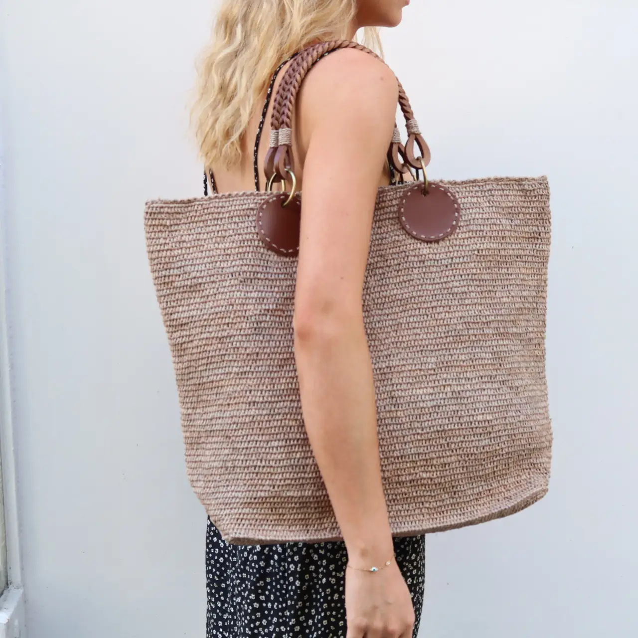 The Beby MA-D is handmade in Madagascar with beautiful braided handles and a crocheted openwork raffia mesh.Ā