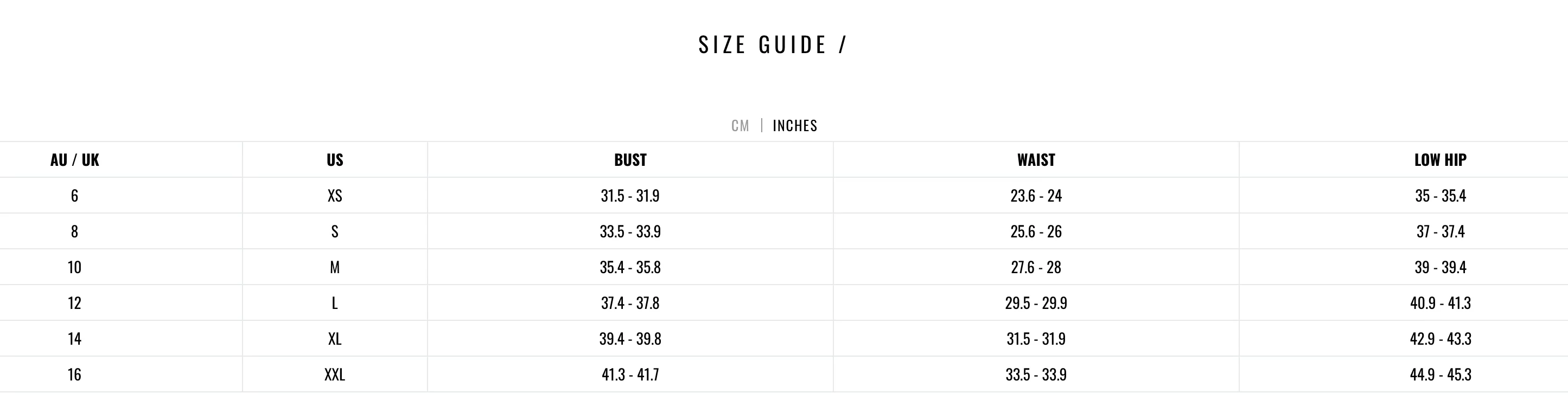 **Sizing notes: